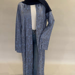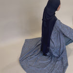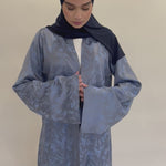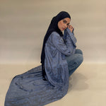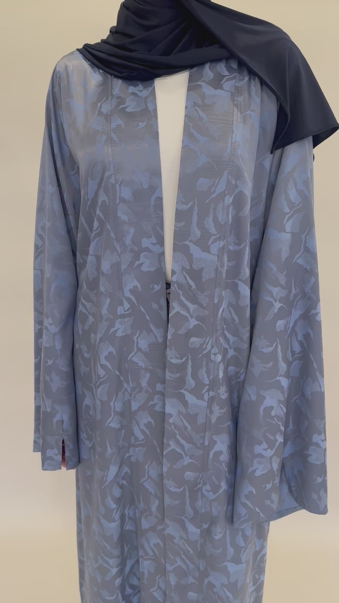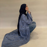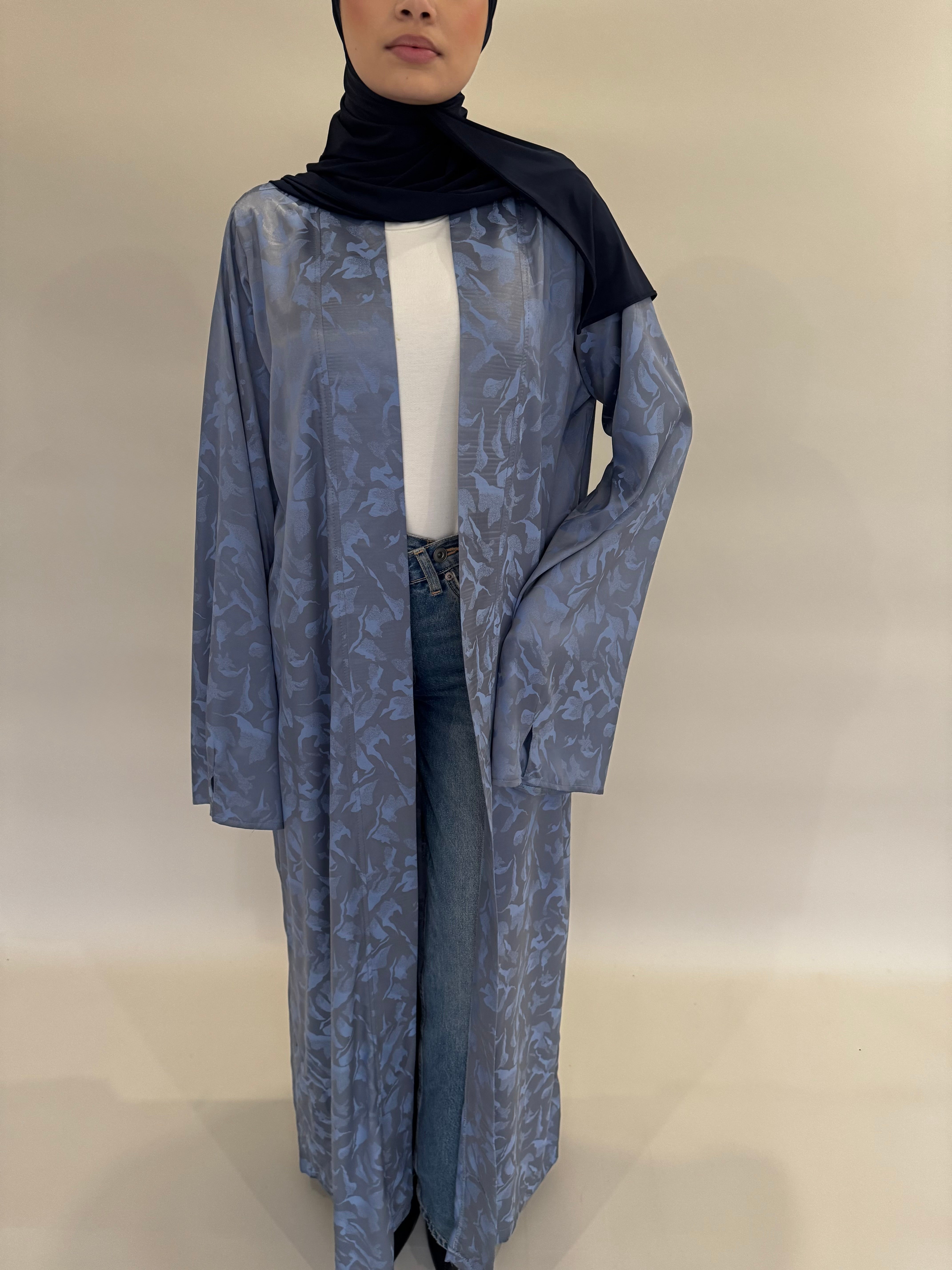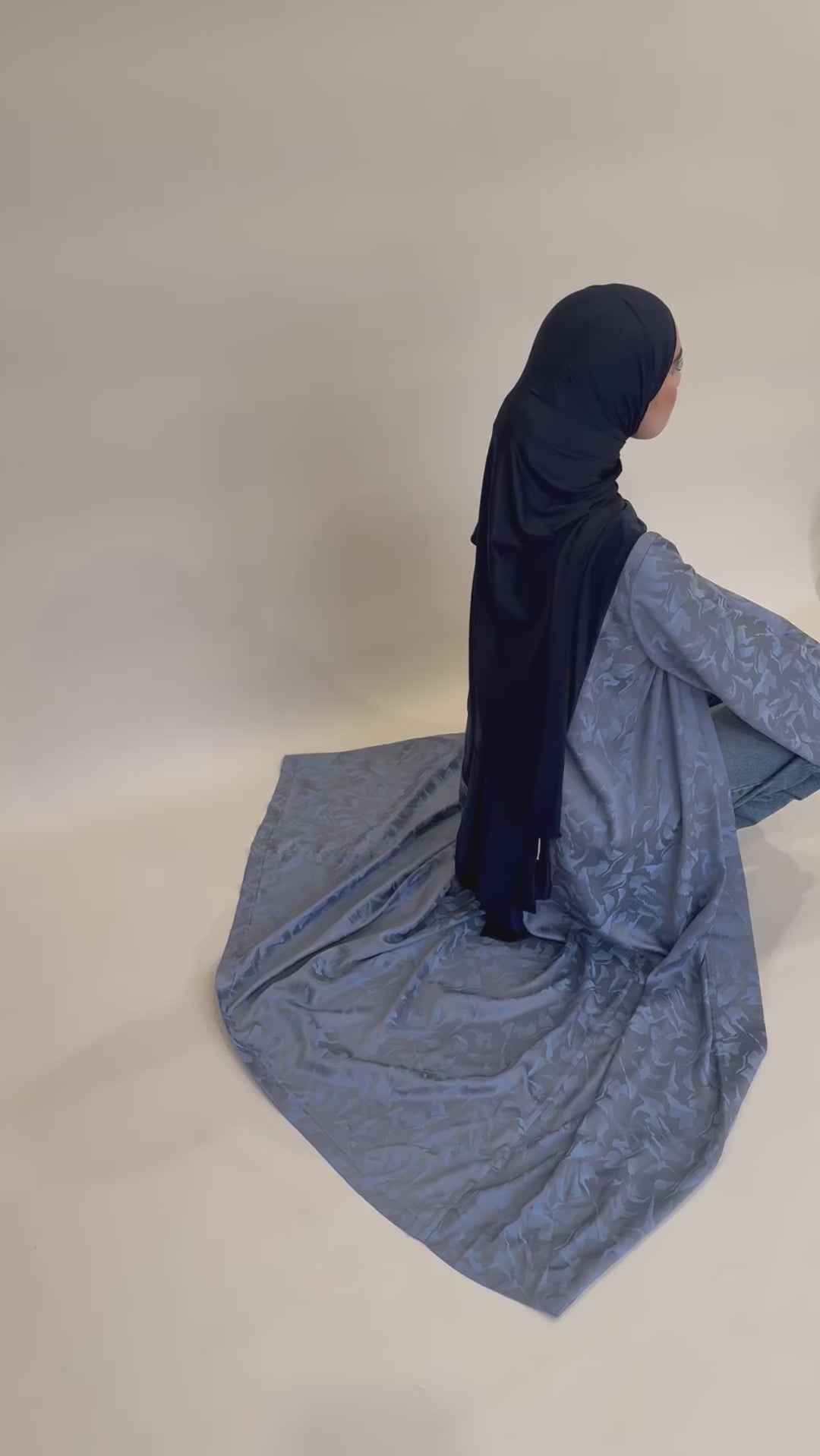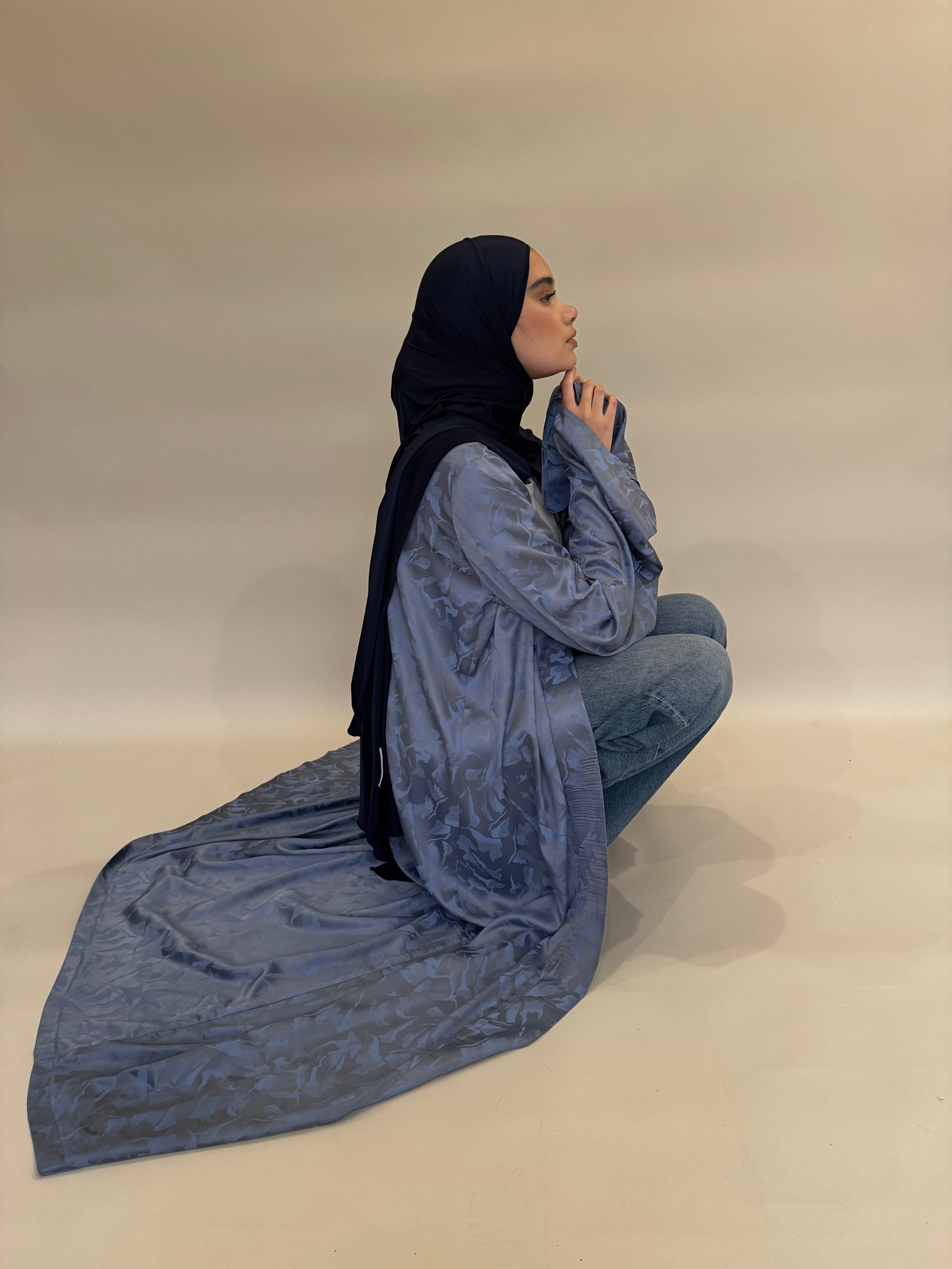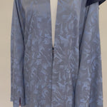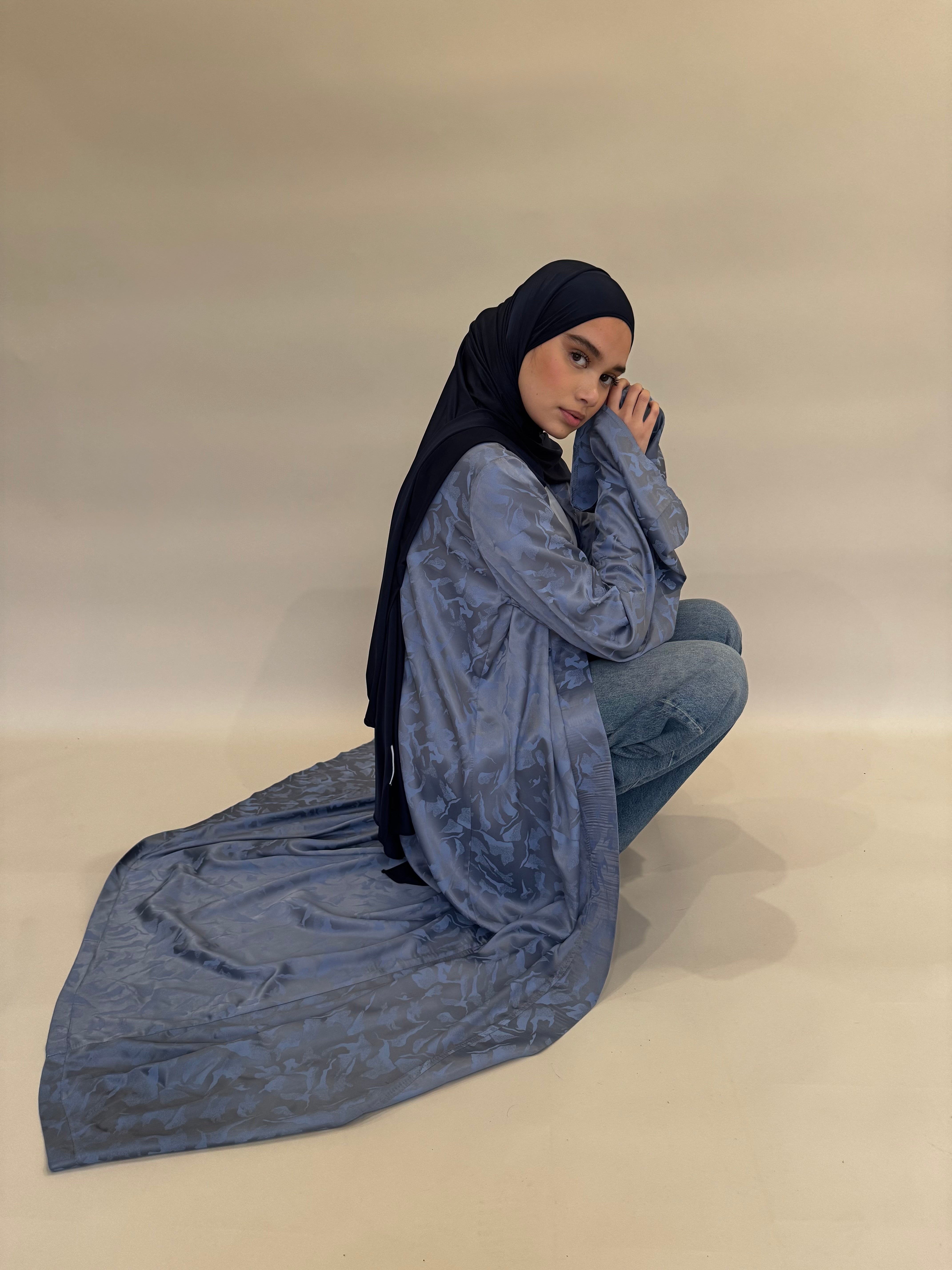 Confectionné dans un tissu fluide aux motifs délicatement texturés, ce kimono offre un tombé aérien et raffiné. Sa teinte bleu nuit, profonde et lumineuse, incarne une élégance intemporelle.